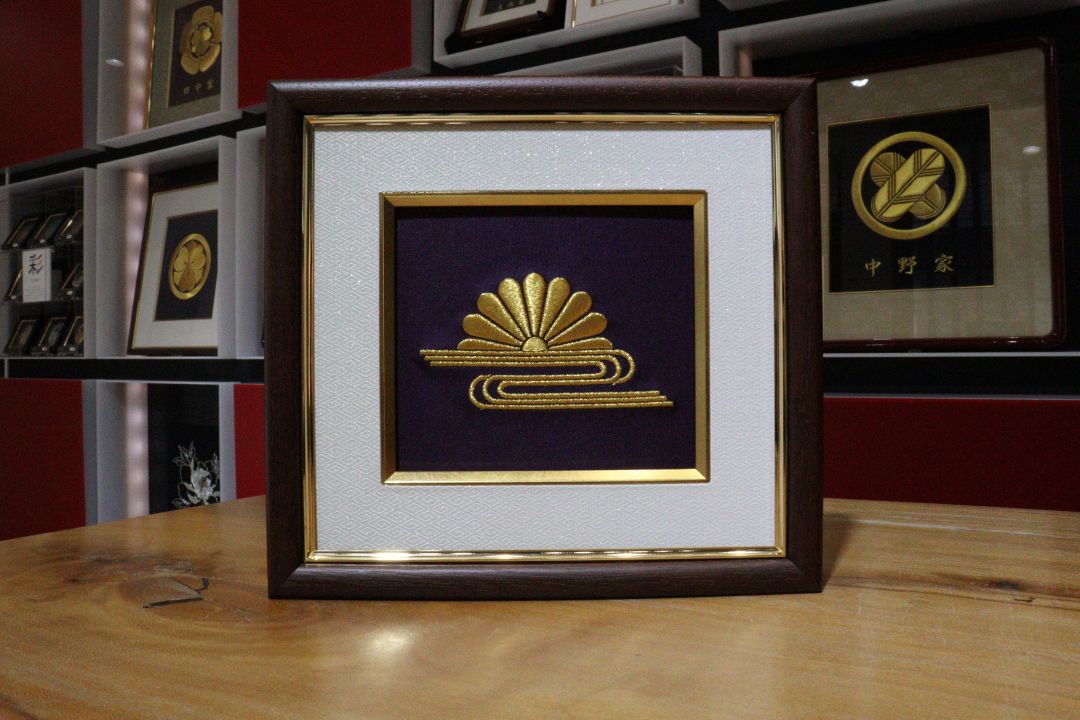 西陣織 家紋刺繍額(紫地・本金糸 9cm)